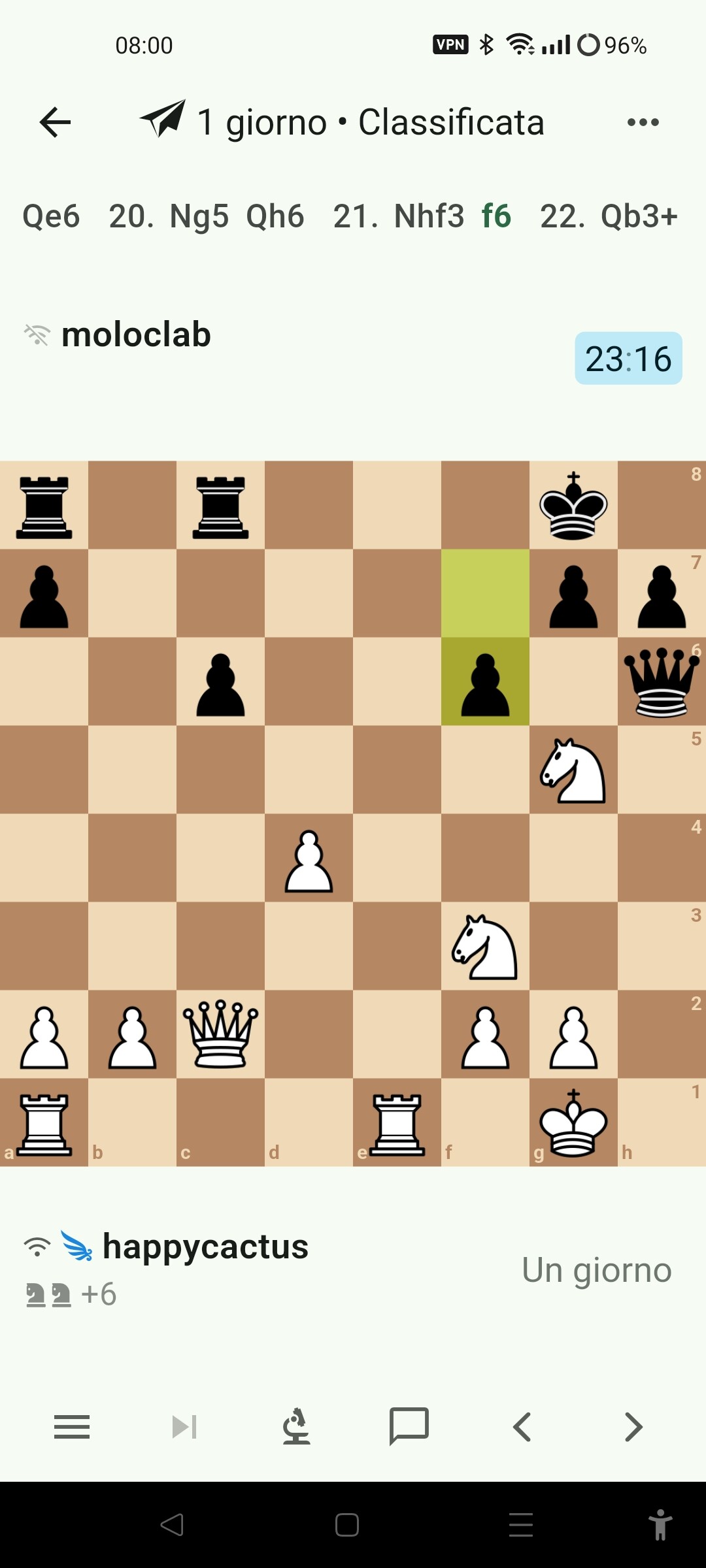 per dire, dopo aver postato, mi è arrivata la notifica… il bianco ha giocato e5, rispondo con Af4, spengo, torno qui… vedremo…